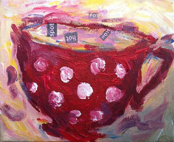 Rhyming Cuplet 2 Published June 11, 2015 at 567 × 462 in Yellow Teapot Rhyming Cuplet 2 acrylic paint, teacup joy, rhyming words from magazines Sally Swain original artwork