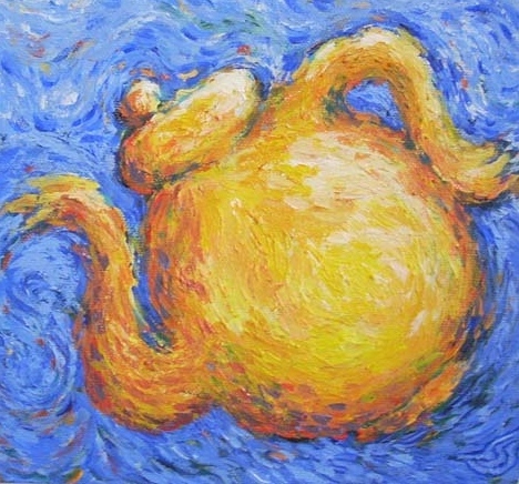 Yellow Teapot Published June 11, 2015 at 468 × 436 in Yellow Teapot Yellow Teapot acrylic paint, impasto medium Sally Swain original artwork