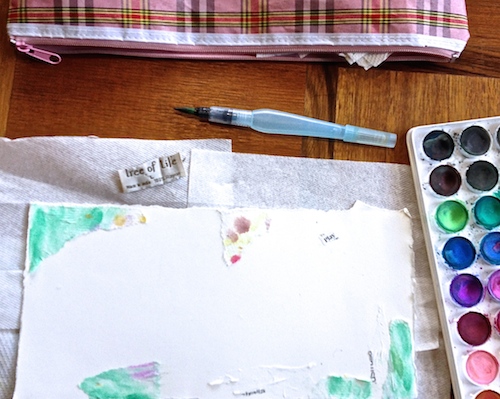 Back in the Art Home, my art-heart finds my pink tartan pouch of minimal materials.