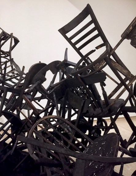 A stack of meaningful burnt chairs directly spoke to the nostrils of my heart. You could smell the fire. Powerful. Political.
