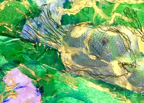 2. My art image with a fish came from a healing journey lead by a shaman. In my journey I was floating above a cold mountain stream when a fish spoke to me out of the water. The fish said “You won’t find your answers on the surface. You have to go down deep below the water to know.” The collective unconscious is amazing. The knowledge we we seek right within us.